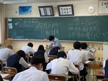 3学年 第4回テキストテスト 公開日 2022/06/15 更新日 2022/06/15 3学年 6月15日(水) 第4回テキストテストを実施しました。 テキストから全く同じ問題を出題するテストはこれで最後で、次回からは、範囲が広い確認テストになります。範囲表は明日配付します。 期末考査直後に確認テストを実施するので、より計画的な学習が必要ですね。