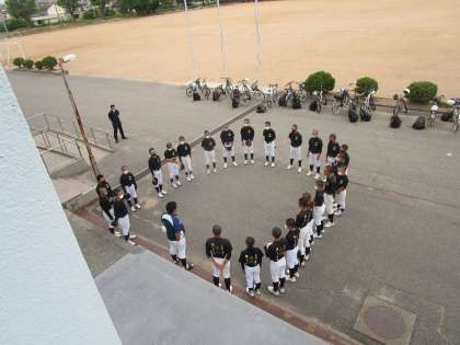 野球部が朝のミーティング 公開日 2022/06/18 更新日 2022/06/18 部活動 6月18日(土) 野球部が生徒玄関前で朝のミーティングをしていました。ミーティング後、自転車で五福公園に向かいました。