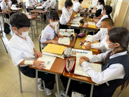 グループで教え合ったり疑問を出し合ったりして協力しながら学んでいました。