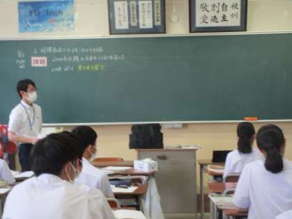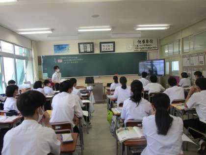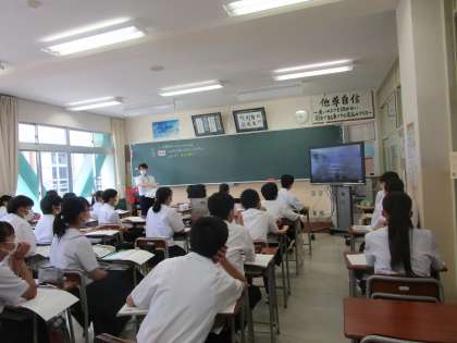 3年6組の社会は、「国際社会におけるこれからの日本」と題し、東日本大震災の動画を観ていました。