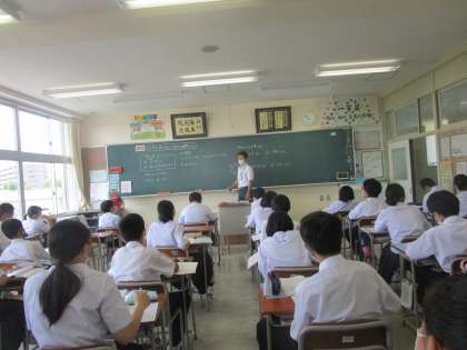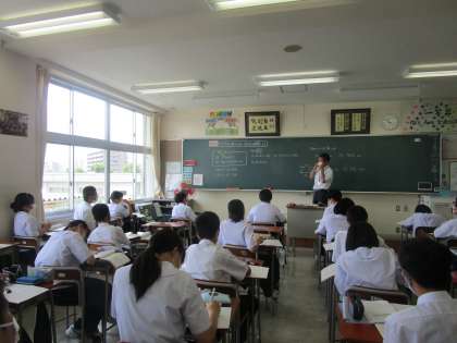 1年4組 数学 公開日 2022/06/22 更新日 2022/06/22 1学年 1年4組の数学は、「文字をつかうときのきまりを理解しよう」という課題で学習していました。きまりを確認しながら授業が進められていました。