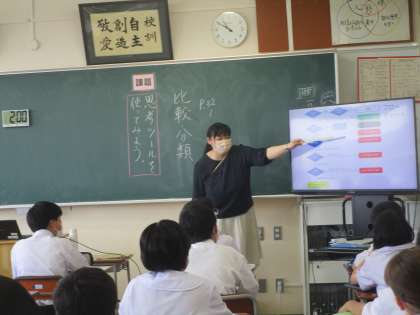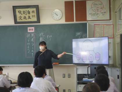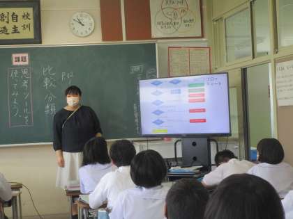 1年5組 国語 公開日 2022/06/22 更新日 2022/06/22 1学年 1年5組の国語は、「比較・分類」の学習をしていました。「思考ツールを使ってみよう」ということでフローチャートなどについて説明を聞いていました。