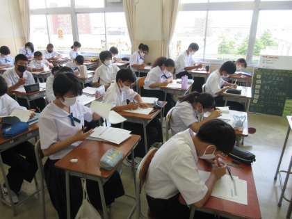 1年3組 数学 公開日 2022/06/24 更新日 2022/06/24 1学年 3限は数学でした。「正負の数」のプリント学習をしました。来週から期末考査が始まります。これまでの学習内容を確かめるように、真剣に取り組んでいました。