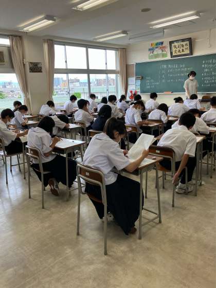 一年生は初めての期末考査です。 3時間、頑張りました。