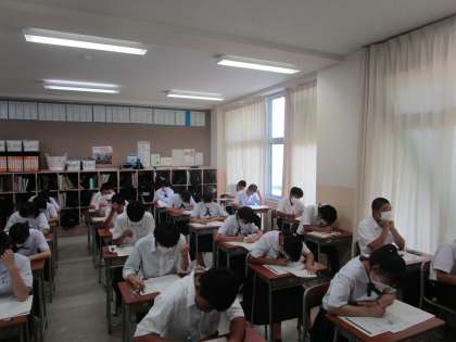 期末考査2日目 3学年 公開日 2022/06/28 更新日 2022/06/28 3学年 6月28日(火)3限、3年生は数学のテストに挑んでいました。学習の成果は発揮できたでしょうか。残り3教科、最後まであきらめず頑張ってください。