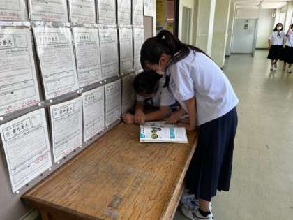 テスト最終日 最終確認 公開日 2022/06/29 更新日 2022/06/29 1学年 テスト最終日になりました。 写真は1年1組の休み時間の様子です。 教科書やファイルを見て友達同士で最終確認をしていました。