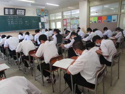 期末考査3日目 2年生理科 公開日 2022/06/29 更新日 2022/06/29 2学年 2年生の期末考査の最終日は理科でした。テストが終わったときは、みんなほっとした表情でした。お疲れ様でした。