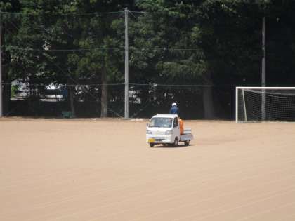 グラウンドには、PTA親子活動で草むしりもしていただきましたが、また、草が生えてきました。業務長さんと用務員さんで軽トラックに除草剤を乗せてくまなくまいてもらいました。暑い中にもかかわらず、声をかけてもつらい顔もされず、当たり前のように学校の環境整備をいつもしてもらっています。ありがとうございます。