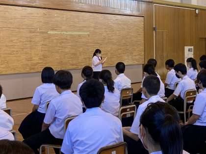6限目の総合は、来週月曜日から始まる「14歳の挑戦」に向けて決起集会を行いました。