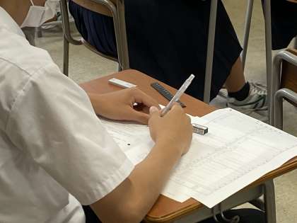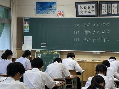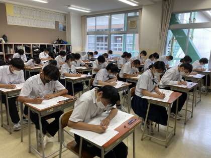 3年実力テスト 公開日 2022/07/04 更新日 2022/07/04 3学年 7月4日(月) 3年第1回実力テスト 期末考査が終わったばかりですが、1年2年の学習内容の確認テストを実施しています。 今日は社国理の3教科、明日は英数の2教科です。