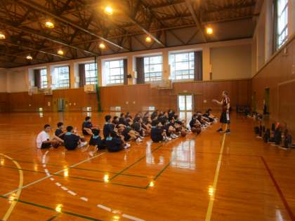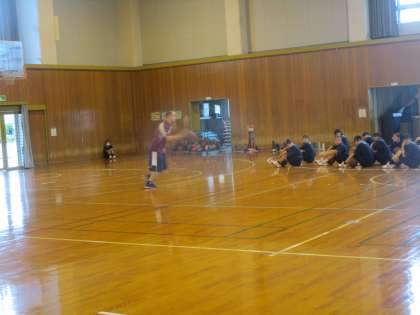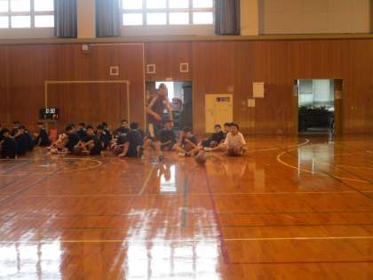 1年1組 保健体育 公開日 2022/07/04 更新日 2022/07/04 1学年 1年1組の保健体育は、体育館でバスケットボールの学習をしていました。スキルテストの説明を先生が示範しながら教えていました。