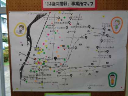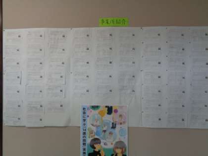 2年生は、今日から8日まで14歳の挑戦を行います。生徒玄関前に、活動事業所を掲示しました。