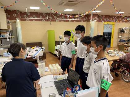14歳の挑戦 公開日 2022/07/04 更新日 2022/07/04 2学年 生徒たちは利用者の方々と一緒に体操や、お話をしたり、水分を補給するよう促していました。また、指導の方々のお話をしっかり聞き、活動に臨んでいました。