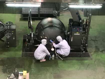調理で使った大きな鍋を丁寧に洗っています。仕事内容で分からないことは自分から積極的に聞いています。