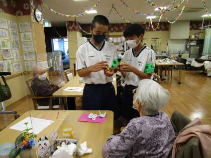 利用者さんたちとパズルやお話しをしていました。 互いに声掛けしながら、昼食の片付けを行っていました。