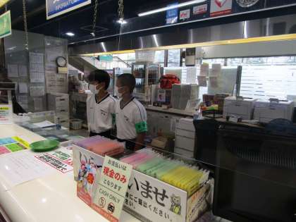 カウンターで接客業務を行っていました。 二人とも姿勢がとても良かったです。