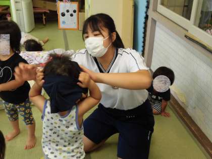 園児たちの遊び相手になったり、着替えを手伝ったりしていました。お兄さんお姉さんぶりを発揮していました。