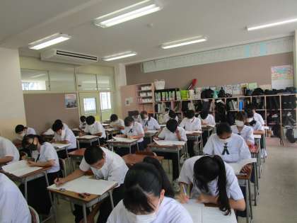 7月5日(火)1限 確認テスト2日目、1限の英語のテストに臨んでいます。