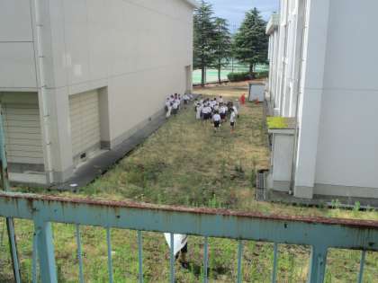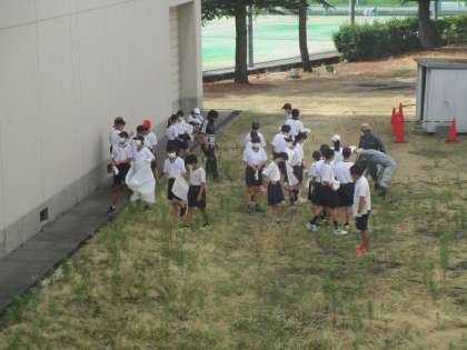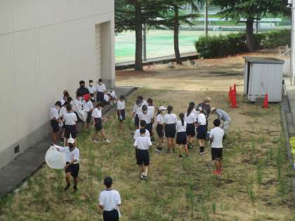 社会に学ぶ14歳の挑戦2日目、火曜日で定休日の生徒がいつもは業務長さん、用務員さんが行っている学校の環境整備を体験していました。雨が降っていないので外回りの環境整備を頑張っていました。