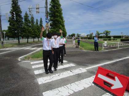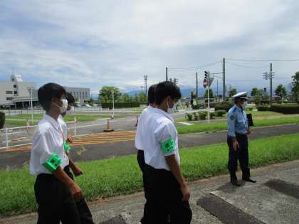 交通安全について学習していました。 暑い中頑張っていました。