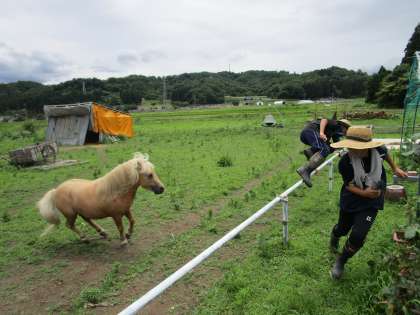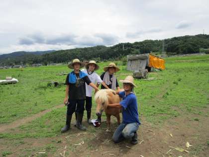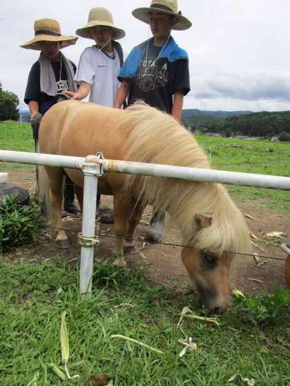 馬のお世話をしてました。