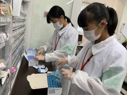 黙々と目薬を袋に詰めていて、手際よく仕事をこなしています。