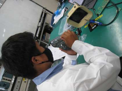 午後は技術者指導の元、電気回路の組立て作業を行っていました。