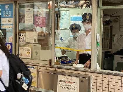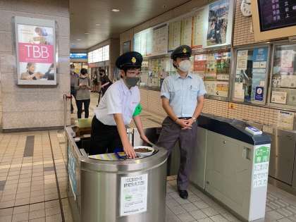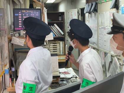 駅員さんに、お客様を誘導する放送の仕方や対応の秘訣を教えていただいていました。