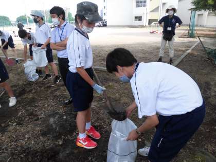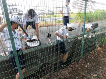 本日事業所が定休日の生徒は、学校の敷地内の側溝整備を行いました。枯れ草や枝がたくさんありましたが、せっせと掘り出しきれいにしました。