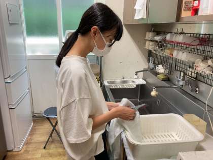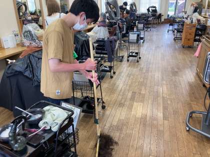 床の清掃や薬剤の混ぜ合わせを行なっていました。