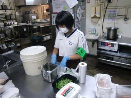 14歳の挑戦 3日目 15 公開日 2022/07/06 更新日 2022/07/06 2学年 スタッフ間での声掛けなど、コミュニケーションのとりかたを学びました。また、サラダを均等に分ける作業では平等になるように真剣に取り組んでいます。