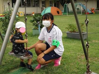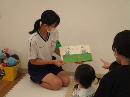 幼稚園で園児たちに絵本を読み聞かせたり、遊具で遊ばせたりしていました。