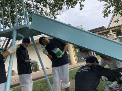 14歳の挑戦 3日目 28 公開日 2022/07/06 更新日 2022/07/06 2学年 坂本吹付工業さんで活動する生徒は、幼稚園へ出張して滑り台の塗り替え作業に参加しました。丁寧に塗り上げて鮮やかな滑り台に生まれ変わりました。