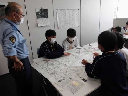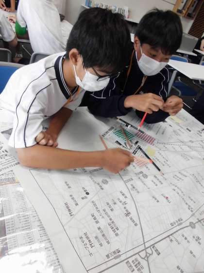 また、学校周辺の危険場所や避難先などをイメージして、ハザードマップを作成していました。よく頑張っています!