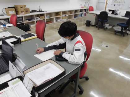 作業服を着させていただいたり、貴重な体験をさせていただいています。またHPで活動の様子を伝える文章の作成に苦戦しながらも頑張っていました。