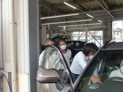 納車する車の説明を、車内を見ながら真剣に聞いていました。