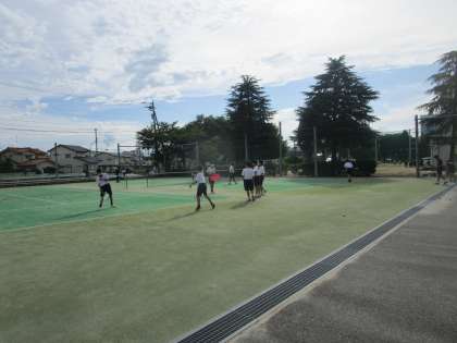 ソフトテニス部 公開日 2022/07/16 更新日 2022/07/16 部活動 明日の県選手権大会に出る女子2名と県民体育大会に出る男子メンバーと男子顧問の先生が1コートで最終調整していました。横では、男子2年生が先輩に負けないよう懸命に練習していました。