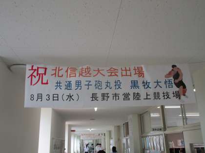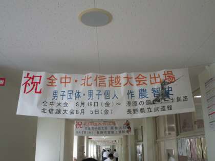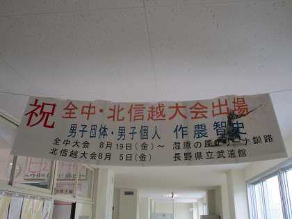 全国大会、北信越大会を応援する横断幕 その2 公開日 2022/07/19 更新日 2022/07/19 3学年 全国大会、北信越大会を応援する横断幕が廊下に掲げられています。出場できなかったみんなの分まで頑張ってきてください。3年生のみんなの想いも詰まっています。