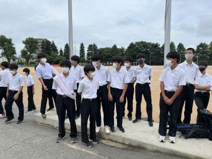 生活委員会の企画による「部活動あいさつリレー」でサッカー部が元気なあいさつをしていました。