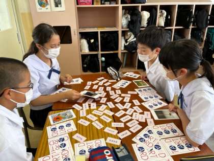 県美術館のアートカードを使って、カードに合う言葉を選び、理由を発表し合っていました。