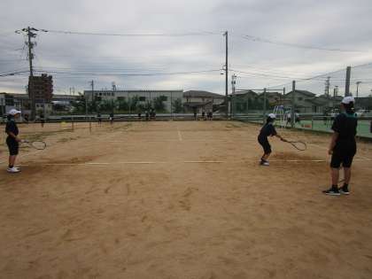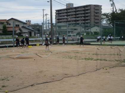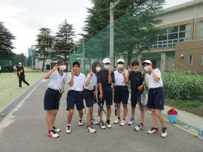 テニスコートでは女子ソフトテニス部が練習していました。1・2年生での練習が本格的に始まりました。夏休み中の試合に向けて頑張っています。2年生女子がみんなで笑顔で写真に写ってくれました。