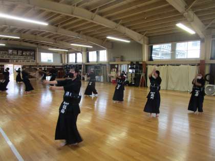 男女剣道部が武道館で北信越大会に向けて頑張っていました。