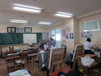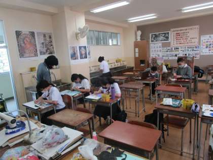美術室2カ所では美術部が作品制作を行っていました。油絵やパネルなど自分のテーマで取り組んでいました。どんな作品ができあがるのでしょうか。仕上がりが楽しみです。