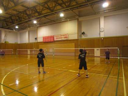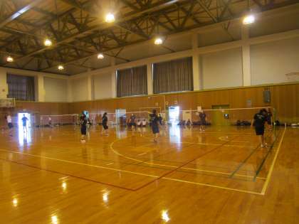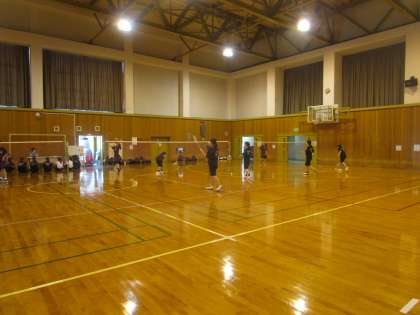 男女バドミントン部が体育館で頑張っていました。1年生も毎日の練習でシャトルを上手に打っていました。