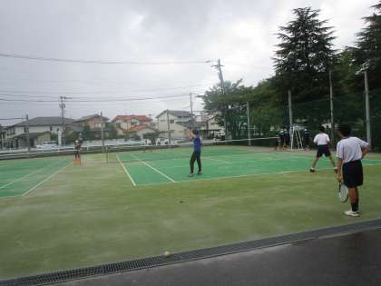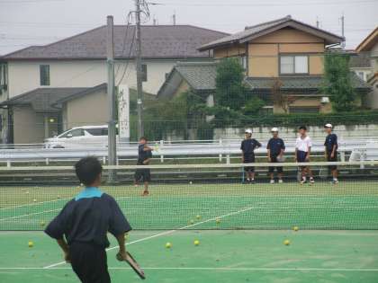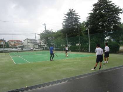 雨が降ったりやんだりですが、オムニコートはすぐに使えて顧問の先生と一緒に練習を頑張っていました。