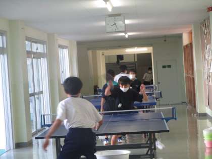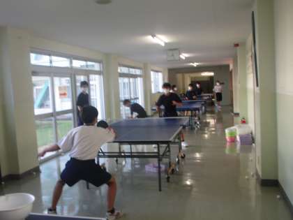 8月22日(月)男子卓球部 公開日 2022/08/22 更新日 2022/08/22 部活動 男子卓球部が給食室前廊下で練習に励んでいました。みんな夢中になって打ち合ったり、試合をしたりしていました。
