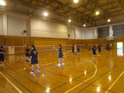 男女バドミントン部が富山市新人大会に向けて練習に励んでいます。シャトルをたくさん使って練習していました。