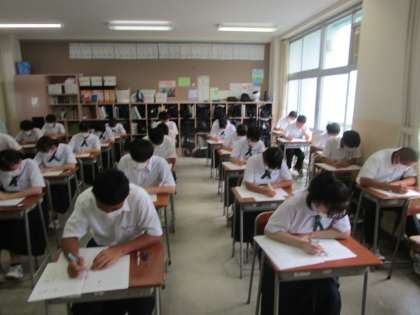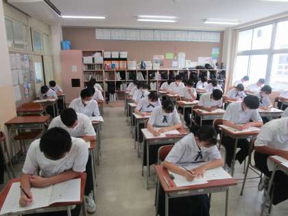 3年の3限は理科の確認テストでした。3年4組のテストの様子です。