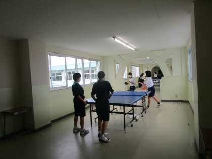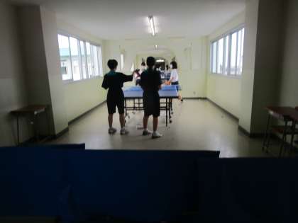9月2日(金) 女子卓球部が4階廊下でサーブ練習に打ち込んでいました。