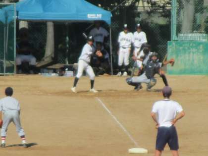 野球部 練習試合 公開日 2022/09/04 更新日 2022/09/04 部活動 9月4日(日)午前 快晴の元、野球部が奥田中学校グラウンドで練習試合をしていました。1回表3番ファーボール、4番ライト線への2塁打でツーアウト、2、3塁の場面です。果たして勝敗の行方は?